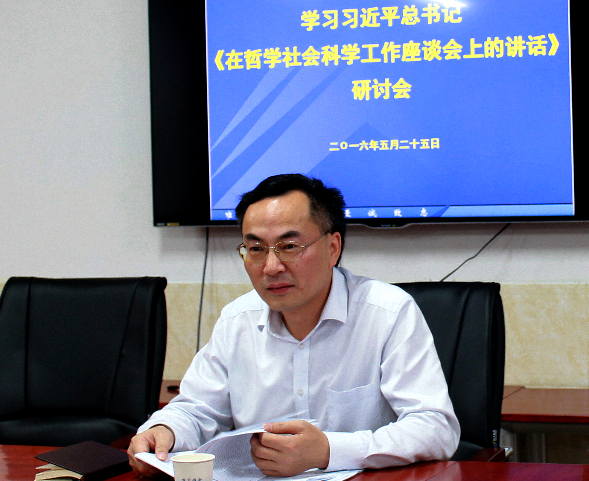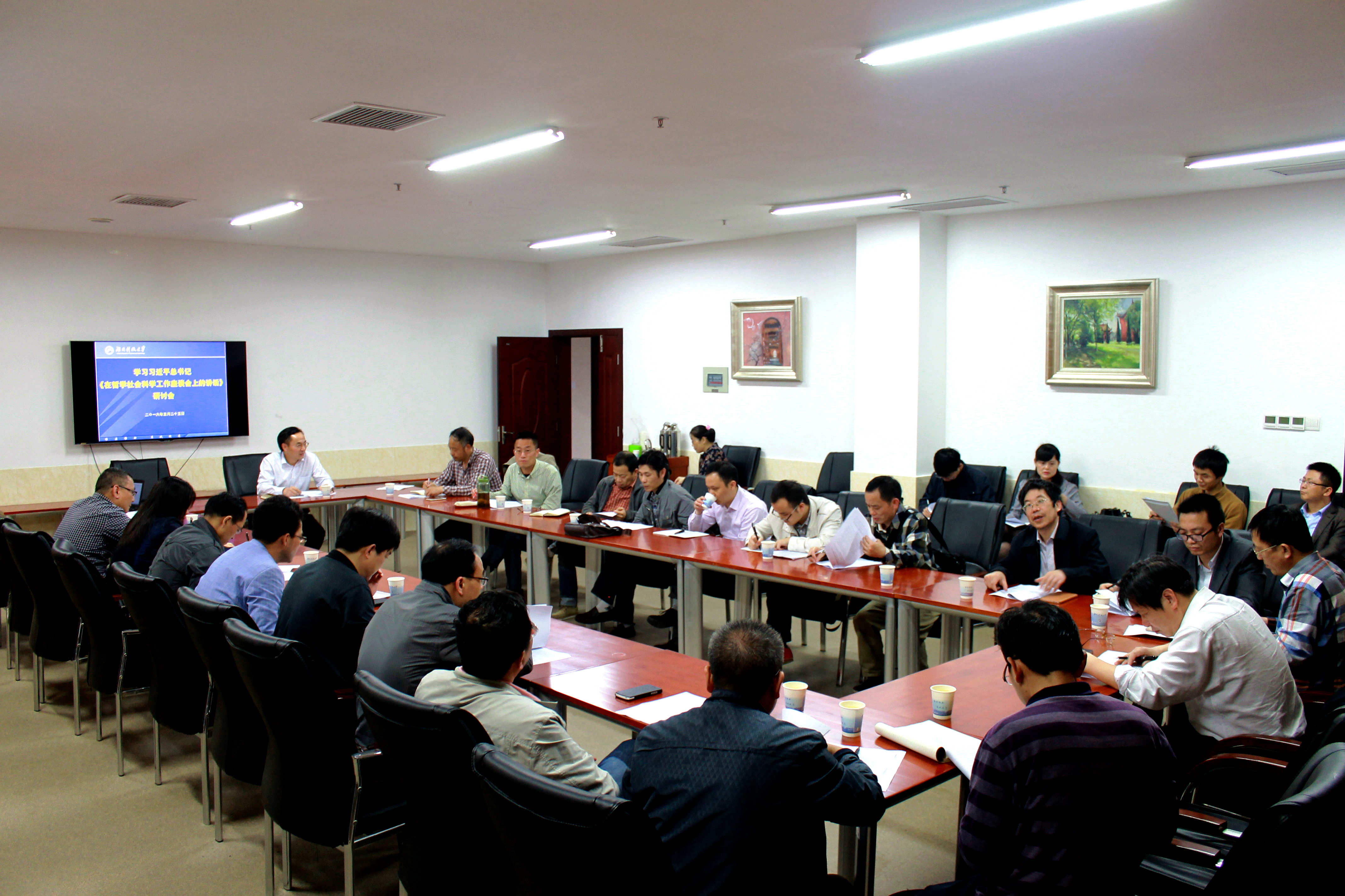 525日,我校学习《 习近平在哲学社会科学工作座谈会上的讲话》 精神研讨会在 417会议室召开, 廖湘岳副校长主持了研讨会。与会人员 我校 文科学院科研主管副院长、学院教师代表、文科省级基地负责人和社科处、宣传部等共计30 人组成。