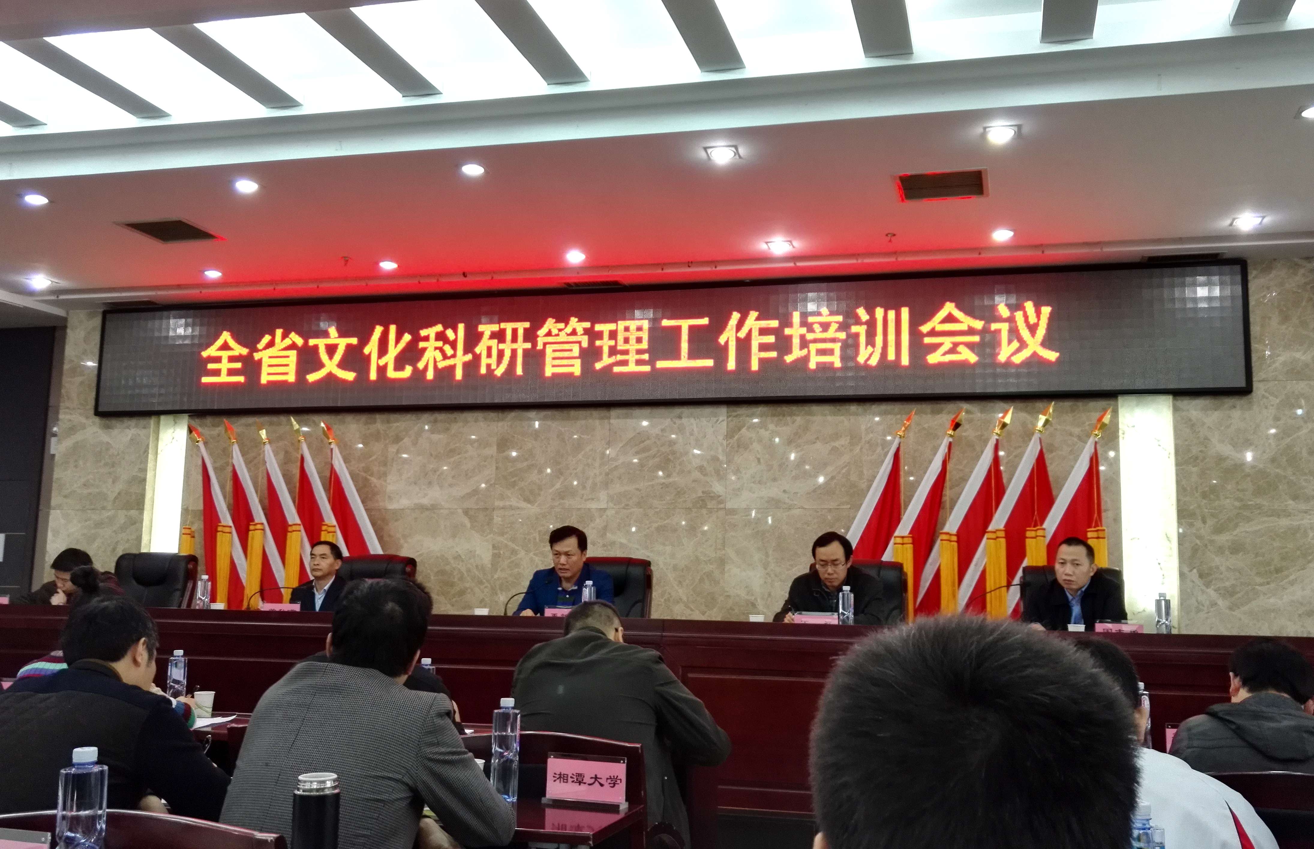 1027 28 ,全省文化科研管理工作培训会议在长沙召开,厅党组副书记、副厅长禹新荣作开班动员讲话。厅办公室、厅规划财务处负责人,各市州文()广新局的相关科室负责人以及全省主要高校艺术院系、高校科研管理相关负责人 文化系统各单位有关科研管理的负责人参加了培训。