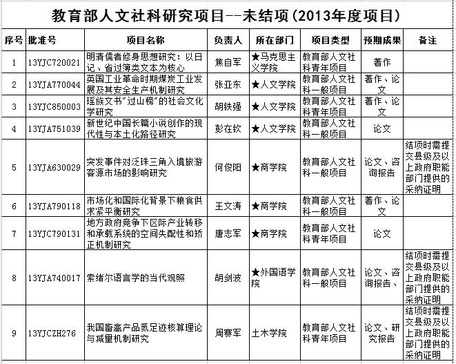 本次项目清理的范围是:2013 教育部社科 司批准立项的所有未结项、申请结项未通过或经批准延期后到期仍未结项的规划基金项目、青年基金项目、自筹经费项目。
