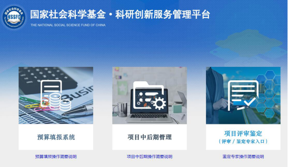 符合条件的申报专家自行登录全国哲学社会科学工作办公室网站主页国家社科基金科研创新服务管理平台(网址:https://xm.npopss-cn.gov.cn/index.jsp)填写,首次注册和登录方式详见平台使用说明。如图: